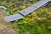 В конце августа, когда мы были на Шпицбергене, лето как раз вступило в свои права и пущица цвела вовсю, занимая любые возможные для себя места, особенно там, где земля больше прогревается на открытых участках и еще там, где стоят неглубокие лужи — вода в полярный день хорошо прогревается от практически не заходящего за горизонт Солнца.