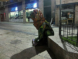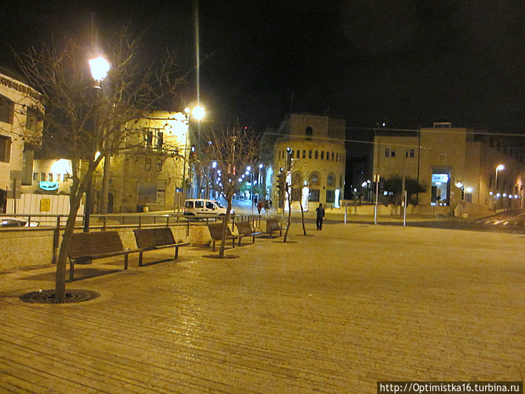 и пошли по направлению к нашему отелю, мы поразились, насколько пустынны стали улицы. Казалось город вымер. Хотя время было ещё не позднее, около шести часов. По этой улице обычно ходит трамвай, но трамвай не ходил.На пешеходной улице Бен-Иегуда, где ещё вчера бурлила жизнь
