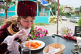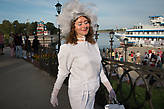 Пару дней я к ней приглядывался. Пытался даже понять логику ее преображений. К утреннему теплоходу, идущему из Москвы в Санкт-Петербург, она вышагивала по набережной в образе гранд-дамы, словно оживший экспонат местного музея «Городского быта» (кстати, такой в этом городе действительно есть!), к вечернему теплоходу, идущему в Москву из Санкт-Петербурга, — она уже была женщиной-вамп. А утро следующего дня моя визави встречала в образе корнета из «Гусарской баллады» Эльдара Рязанова — не меньше!.. Уже потом, познакомившись и договорившись о съемке, я узнал, что в запасе у Кристины, а именно так затейливо ее и звали, — еще пара десятков костюмов, сделанных ею самой и исключительно вручную — ножницами и иголкой с нитками.