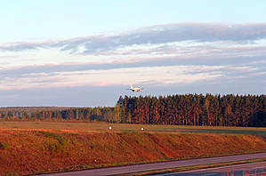 Провожал свою драгоценную в Болгарию, застал рассвет над взлётной полосой соседнего аэропорта и борт из Питера, заходящий на посадку.
