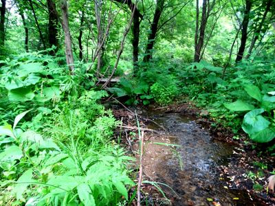 Судьба последнего родника самого мощного и красивого оказалась самой незавидной. Он, в отличии от остальных, вытекает не из основания сопки, а с верхней ее части и дачники используют эту особенность для полива своих участков. На протяжении всего спуска родника я насчитала около четырнадцати затончиков