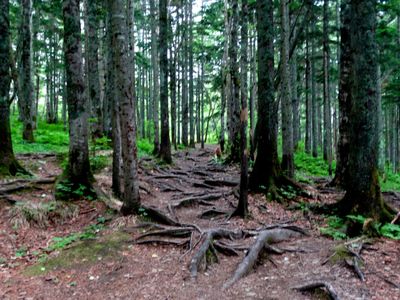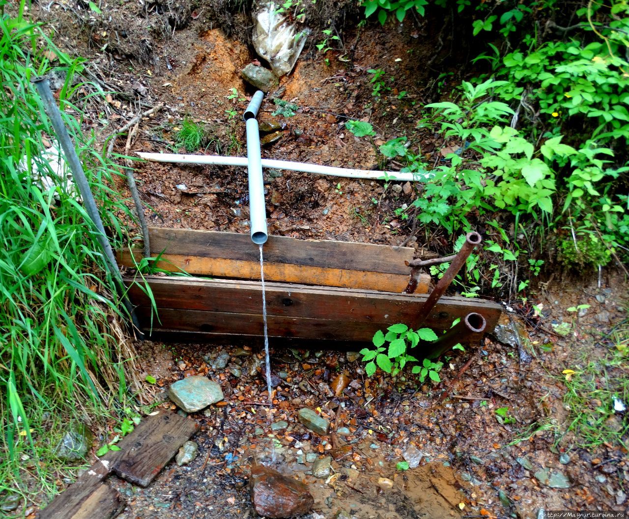 . Здесь не самая вкусная вода и к нему ходят те, кто живет рядом или не хочет стоять в очереди к другим родникам.Следующий родник расположен в ложбине между двумя невысокими сопками и к нему можно подойти только по мокрой тропе.