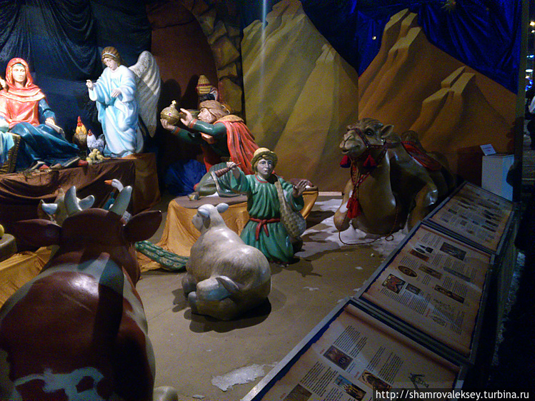 Для детей и взрослых рядом с вертепом размещены специальные таблички повествующие о каждой фигуре Рождественской композиции и её символическом значении.