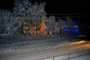 Вот такая у нас красота сегодня! На деревьях иней и падают снежинки! Вышла с работы и "околдована, очарована"... Подарок к Новому году!
