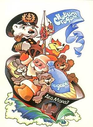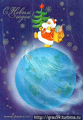 В первой было написано : "Посылаю тебе Снеговика с праздничными открытками". А снеговик выглядел примерно вот также как на открытке