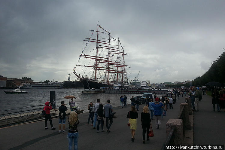 Парусник пришвартовался 20 июля возле Набережной Лейтенанта Шмидта, где собрал множество народу. После официальной части желающие могли подняться на борт, на бесплатную экскурсию.