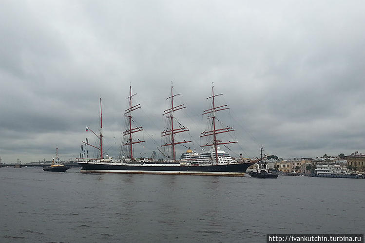 Барк Седов, самый крупный действующий парусный корабль в мире пришел в Санкт-Петербург. Сообщили, что он вернулся из кругосветного плавания. Несмотря на почтенный возраст судна (спущен на воду в 1921 году), это было его первое кругосветное плавание. Он четыре раза пересекал экватор, побывал во всех океанах, заходил во множество портов. Поскольку порт его приписки Мурманск, то, строго говоря, его кругосветный поход еще не закончился. Вот когда придет домой, тогда и будет окончание путешествия. А пока он все еще в гостях.