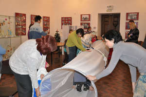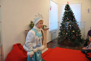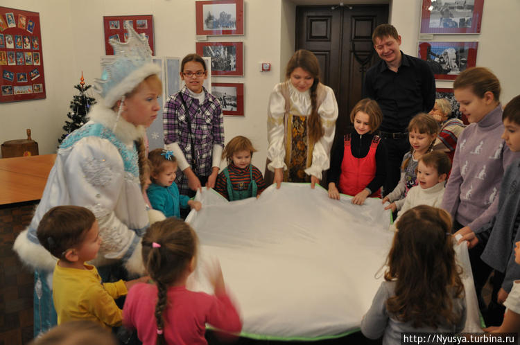 Небольшой зал, где разместилась выставка "Парад Дедов Морозов" собрал тёплую компанию родителей с детьми. У камина перед младшими удобно устроилась Снегурочка и стала читать новогоднюю сказку. Только вот беда — пропала сказка со страниц книжки и пришлось нам всем вместе отправиться в волшебную страну. А уж там, как настоящих сказочных героев, ждали нас самые разные задания. Мы и перину Морозке взбили, и муку мололи, и каравай пекли, и наряд новый Дедушке Морозу сделали. А он нам и ёлочку зажёг, и гостинцами наградил. Что мне больше всего понравилось? Мы были все вместе, никто никого не расталкивал, пробиваясь на "самые выгодные" места (они все выгодные были), дети не только поиграли, но и полезное кое-что узнали. А самое главное — настроением хорошим зарядились все присутствующие.