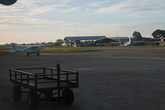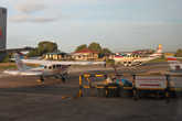 Вскоре мы стали лететь над океаном, и я задремала. Неудивительно, ведь сегодняшнему утру предшествовала бессонная ночь, а когда я проснулась, наш путь пролегал уже вдоль шоколадной реки (по-другому цвет ее определить просто не придет в голову). Довольно скоро мы начали снижаться и не заметили как оказались на посадочной полосе, где виднелись домики, в которых нам еще предстояло проходить всякие визовые процедуры. Ээх!