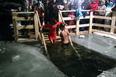 но в последний момент спасовала. В прорубь спускалась в основном молодежь