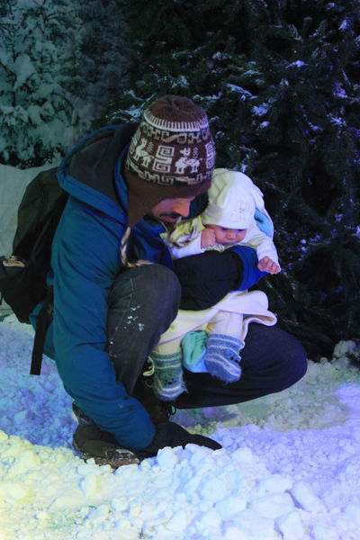 Мне понравилось. Померзнуть для разнообразия всегда приятно. Румяный Женик с удовольствием изучала снег, который показывал ей ее папа, сам не так и много о нем знающий, а я была ответственной за съемку, так как плюнула на ненужные на 20 минут варежки.