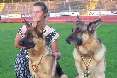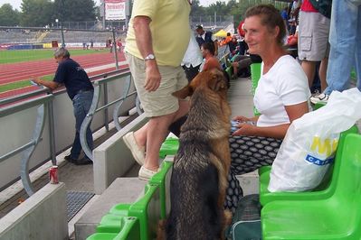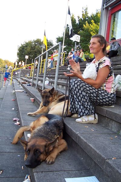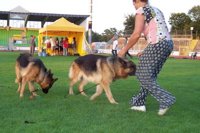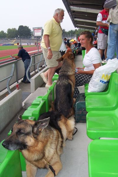 Именно с этих позиций владельцы собак оценивают участие своих молодых собак в младших классах. Таких как мы, с нашей Пилар, на Зигере немного. Ведь ее отец – наш Асслан фом Хаус Ширан, уже не выставлялся в рабочем классе. Его места во второй сотне первых рингов в предыдущие годы, во многом, как раз и обусловлены тем обстоятельством, что мы не могли выставить его племенную группу на Зигере. Для этого надо иметь, как минимум, пятнадцать – двадцать потомков, которых привезут их владельцы на Зигер. У Асслана, конечно, были потомки в Москве и России, но уговорить их хозяев выставить их в Германии невозможно… Поэтому наша Пилар в ринге заведомо проигрывала тем собакам, чьи отцы были хорошо известны в Германии и выставлялись в первом ринге.