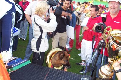 В тот 2005-ый год нашей главной целью участия в Зигере была выставка на нем дочери Асслана – Аурум Аглис Пилар. Ей еще не было двух лет, поэтому мы записали ее в младший класс (собаки от 1 года до 1,5 лет). Участие в этом классе не требует проверки поведения собак перед рингом, поэтому гораздо проще и не так волнительно. Как я уже писал, Пилар к этому времени уже стала Юной Чемпионкой России, выиграв несколько выставок в России. Это – единственное условие для участия в Зигере молодой собаки не из Германии. Поэтому на Зигерах бывает много собак из стран со всего мира. Поэтому его и называют неофициальным Чемпионатом мира по экстерьеру собак (не путать с Чемпионатами мира по дрессировке, – об этом, – позднее).