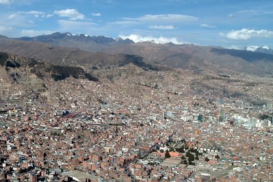 В итоге эта поездка выдалась более быстрой и приятной чем представлялось, а перед финишным спуском в Ла-Пас нас одарили остановкой для осмотра панорамы города на фоне Пика Ильямани (Illiamani) – самой высокой и самой живописной вершины той самой Восточной или Королевской Гряды (называемой также по имени города Ла Пас) – почти 6500 м.