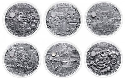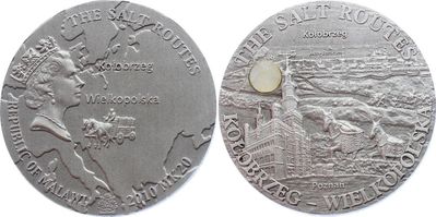 Реверс: Изображение торгового пути, по которому шла торговля солью. Вставка из соли.