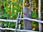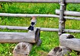 Сойка очень пугливая птица, поэтому обычно удаётся увидеть только её хвост, когда она уже улетает,