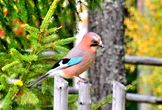 Сойка — птица с красивым оперением. На чёрных крыльях есть яркие, голубые пёрышки, а нежно розовая грудка птицы схожа с окрасом снегиря.