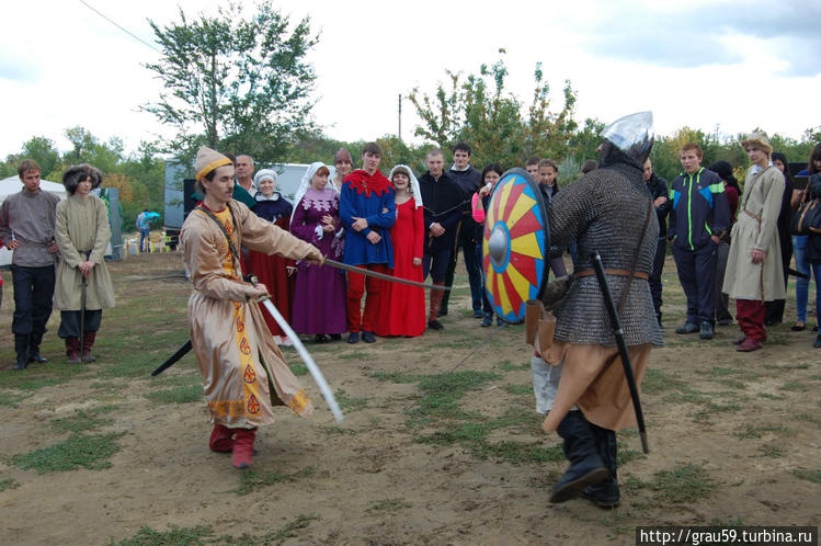 и местное ополчение начало собираться для отражения набега. Только непонятно, кто отражал нападение. Если судить по костюмам — то русичи вперемешку с татарами, но в Укеке вообще-то правил ханский наместник.Битв мы увидели несклько. Одна общая,