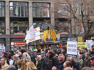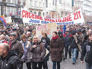 Не менее 10 тысяч, по подсчетам полиции, а, возможно, как заявили профсоюзы, 25 тысяч граждан собралось в субботу на Вацлавской площади в Праге, чтобы принять участие в антиправительственном митинге, созванном профсоюзами и гражданской инициативой Stop правительству!. Лидер Чешскоморавской конфедерации профсоюзов Ярослав Завадил призвал протестовать против действий кабинета гражданско-демократического премьера Петра Нечаса, которое меняет базовые законы страны лишь благодаря «хилому перевесу» в один голос. Профсоюзный лидер также заявил, что желал бы проведения недельной генеральной забастовки в стране, однако, работники заводов и фабрик такого шага опасаются, так как боятся потерять свои места.