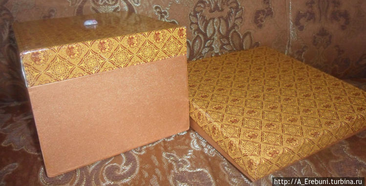 Все подарки упакованы в добротные коробки с национальными орнаментами снаружи и богатой тканью внутри.