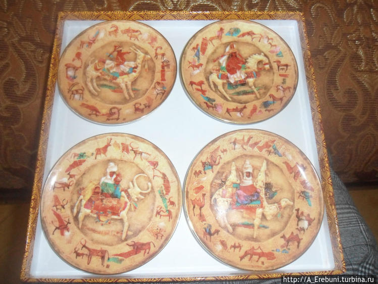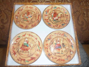 *Серия тарелочек "Четыре этапа жизни женщины кочевницы"* (в оригинале, как написано на тарелках, Four stages of nomad woman's life). Девочка, невеста, мать, бабушка.