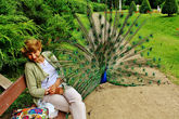 Павлин сам подошёл к нашей скамейке, где минутой ранее мы устроились на перекус. Завидев бутерброды и то, как мы дружно их поглощаем, он вытянул шею, резко приблизил клюв к колбасе и ухватил за самую её середину. Признаться, такой бесцеремонности мы не ожидали, а павлин тем временем окончательно распоясался, проглотив колбасу, он ещё больше распушил хвост и давай перед нами кругами ходить, не упуская при этом из вида наши запасы. Пришлось пожертвовать испорченным бутербродом, не выбрасывать же. Да, павлин — птица бесспорно красивая, но невоспитанная.