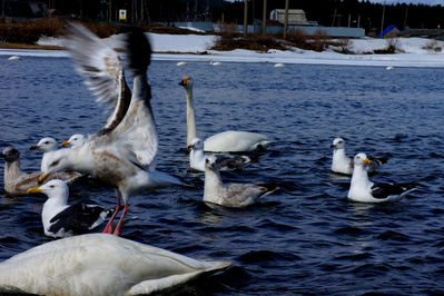 и дерзки, и смелые. Им было абсолютно наплевать, что хлеб кидался не для них — сломя голову бросались в гущу лебединой стаи, крича и создавая кучу малу.На Сахалине чаек пропасть. Распространено в, основном, три вида: тихоокеанская, чернохвостая и китайская. Питаются дарами моря, но очень часто улетают, особенно весной в поля, где балуют себя червячками. Не брезгуют гостить и на помойках. Такая птица нигде и никогда не пропадет!