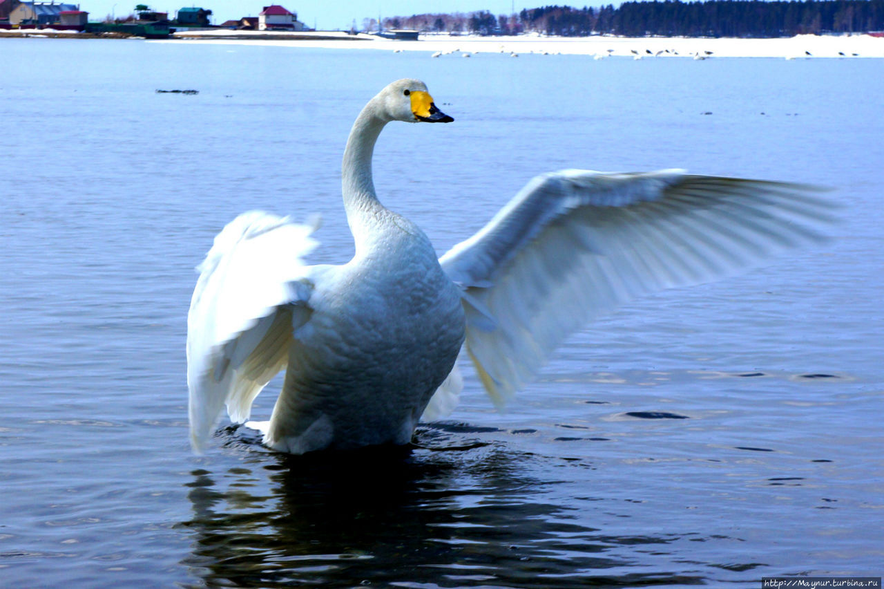 да еще с таким вывертом струи.К такому шумному и наглому соседству лебеди относятся спокойно.