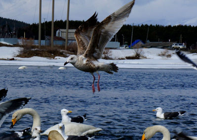 Просматривая свою недавнюю фотосъемку о прилете лебедей, обратила внимание, что сделала очень много снимков с чайками и есть довольно интересные.