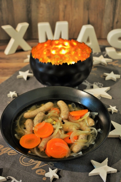 Если немецкие колбаски из грубого свиного фарша сварить в маринаде с добавлением белого вина, то это блюдо будет называться "Кислые Сосиски". А если в маринаде с красным вином, то "Kрасные колпачки". "Колпачки" появились в названии из-за формы сосисочной шкурки. При варке в маринаде она окрашивается в розовый цвет. Колпак по-немецки Ципфельмютце, в таких колпачках обычно разгуливают гномы, которых, как говорят, во Франконии можно встретить немеряно.