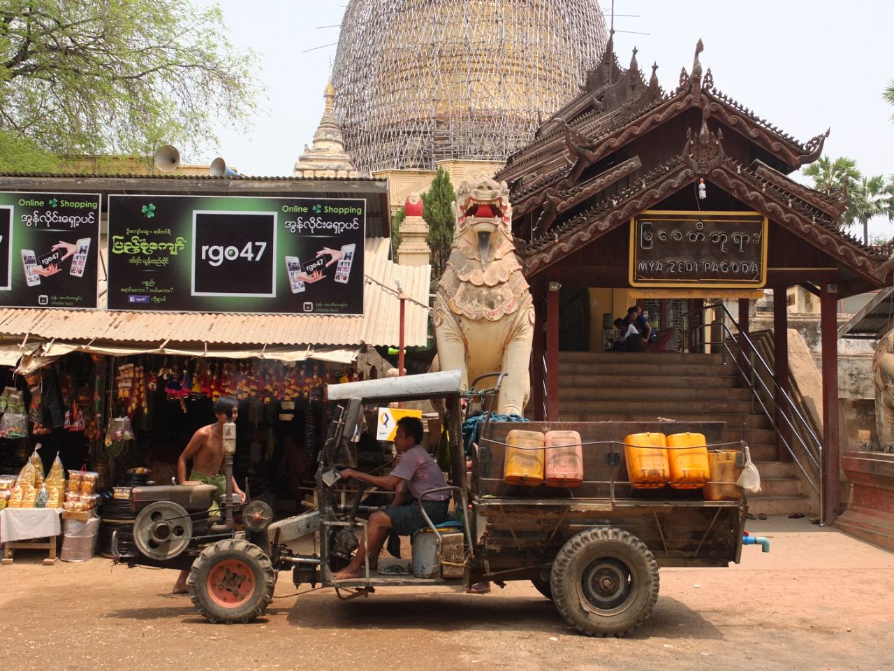 Мьянма страна большая, по меркам региона, размером с Европейскую Россию почти. Есть в ней даже река размером с Волгу, с магическим названием Иравади. В Багане эта Иравади даже чем-то похожа на Волгу, что в районе Самары и Жигулевских гор… Вообще, я потом вспомнил, – в детстве прочел в журнале «Вокруг Света» статью – «Рассвет на Иравади», про что не помню, помню была картинка – женщины на голове несут много больших глиняных горшков друг на дружке, — в 2012 я их и увидел в Мандалае, разгружали баржу из Багана, на закате уже, на Иравади…. А в 2018 на этом же берегу я снова был… (и пиво пил, в пивной, с видом на Иравади, но не пьянел, потому что жарко слишком было с утра уже, всё выпаривалось, или пиво было безалкогольное, но зато холодное…)- эх, Иравади-река…