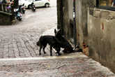 Если отвлечься от старинных улочек и зданий, от воздуха, как пронизанном вечностью, первое из человечного, что бросается в глаза- это собаки.