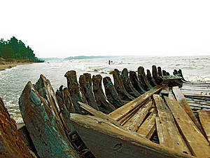 На Ладоге нередки сильные шторма, особенно в осеннее время. Дело было в октябре 2009 года. После сильного шторма жители деревни Нурмойла обнаружили на берегу озера, где в солнечные дни собирается множество отдыхающих, обломки старинного корабля. К находке сразу проявили интерес как местные, так и специалисты из Санкт-Петербурга и Москвы. Предположительно, корабль отнесли к временам Петра I. Носовая часть длиной около 15 метров особенно хорошо сохранилась. Огромные деревянные конструкции скреплены коваными четырехгранными гвоздями и металлическими обручами. Кормовая часть зарыта в песок, и ее было плохо видно. По мнению специалистов музея, делавших первичные замеры на берегу, примерная длина судна составляла 30 метров, а ширина — не менее 7.