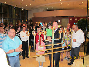 Вот как это мероприятие проходило в нашей гостинице в прошлом году (я с мужем встречала Хануку в Иерусалиме)