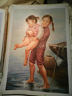В Макао я зашёл в одну торговую лавку и был очарован картинами. Хозяин лавки, он же автор большинства картин, категорически не захотел фотографироваться, но разрешил мне сфотографировать работы. Как я потом узнал, художник этот довольно известный, его работы высоко ценятся.