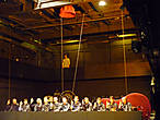Что такое театр за четыре дня до премьеры? Мне это напомнило полусобранный паззл, вид в полутьме. Все высыпано, вывернуто, кусочки паззла разбросаны в полумраке причудливой мешаниной, реквизит образует невообразимые натюрморты, где-то уже собран фрагмент спектакля, и он красив и строен, где-то есть остов, понятно, что будет красиво, но неясно, что именно. Здесь же елка и фуршет в антракте по случаю дня рождения актрисы.
