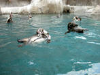 Перекусили в ресторанчике на пляже у бассейна с морской волной, несмотря на огромные очереди, ждали недолго, выбор и вкус еды вполне достойный. После обеда все располагало для приема солнечных ванн – то, чем так грезит моя Лена в отпуске. Я не возражал, пафосная искусственная волна не давала скучать и я, как и визжащая толпа других отдыхающих, бултыхался в бассейне, пока Лена загорала. Мы ушли, когда солнце клонилось к закату, водолаз чистил логово котиков и недовольно грозил пальцем в объектив. Усталые и счастливые мы пришли домой.
