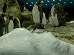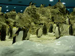 На следующий день мы направились через весь остров в наиболее раскрученный парк отдыха на острове – Лоро Парк (Loro Parque). Дорога туда заняла довольно много времени и, хотя мы выехали довольно рано, но нам пришлось поблуждать по столице острова Santa Cruz de Tenerife, а потом немного в городе Puerto de la Cruz, где и находился парк, в итоге время прибытия составило 12 часов дня. На это чудо, времени в половину дня крайне мало. Мы сразу же купили двойные билеты – в Лоро Парк и новый аквапарк Сиам Парк, один такой двойной билет на взрослого – 49 евро. Не дешево, но это стоит того на все 100%. Вход парка немного пропитан культурой Тайланда, строения, слоны, есть слоны искусно сделанные из выстриженных деревьев. Сначала вас встречает огромный пруд с лилиями и огромной стаей форели. Затем вольер-бассейн с довольно урчащими морскими котиками. Затем вы попадаете в царство горилл, точнее самцов горилл. У них своя история – в огромном вольере живут 4 самца гориллы, в обычной жизни прослывшие неудачниками, т.е. на воле они не заняли доминирующего положения и, соответственно не пользовались должным уважением. Что интересно и в общем вольере ни один из них не стал главным, все они кажутся одиночками и держатся обособленно друг от друга. За ними можно наблюдать как через стекло на одном уровне, или сверху, через защитную капроновую сетку. Сетка нужна для защиты – гориллы иногда балуются и кидают палками в посетителей. Далее, вход в крупнейший пингвинариум – здесь мы едем на движущейся дорожке вокруг ледяного острова, на котором устроили огромный форум для пингвинов, королевские пингвины здесь общаются, собираясь в кружки, стоят под душем из искусственного снега, плавают и ныряют. Бесконечное движение и относительно большие объемы островка создают иллюзию бесконечности пингвиньего мира. Здесь царит легкий полумрак и пингвинов нельзя тревожить вспышками, соответственно хороших фоток с нашей мыльницей в этих условиях получить не получилось. При выходе, спускаемся по большой винтовой лестнице, в центре которой большой стеклянный столб, набитый огромным количеством серебристой рыбы, неизвестной породы, но которую хочется назвать селедкой. В самом конце сувенирный магазин пингвиньей атрибутики, в котором мы приобрели пару сувениров на 10 евро.
