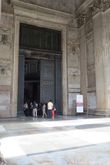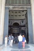 Вход – через портик с колоннами, привезёнными из Египта, и с надписью на фронтоне: М. AGRIPPA L F COS TERTIUM FECIT (Марк Агриппа, сын Луция, избранный консулом в третий раз, воздвиг это). То есть Адриан не стал объявлять строителем Пантеона себя, а всю славу отдал предшественнику.