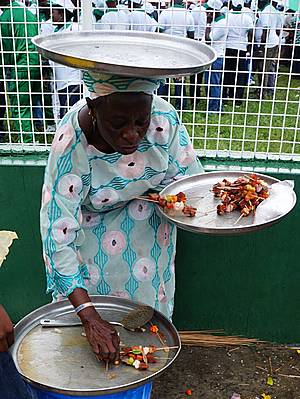 Ну мячики мячиками, а вот посмотрите, как афротетенька ловко управляется с тремя подносами.