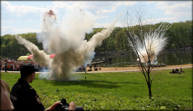 В реалистичной профессиональной постановке приняли участие коллективы из многих городов России. Вот подробный репортаж. По окончании военного спектакля почти все зрители ринулись фотографироваться с артистами.