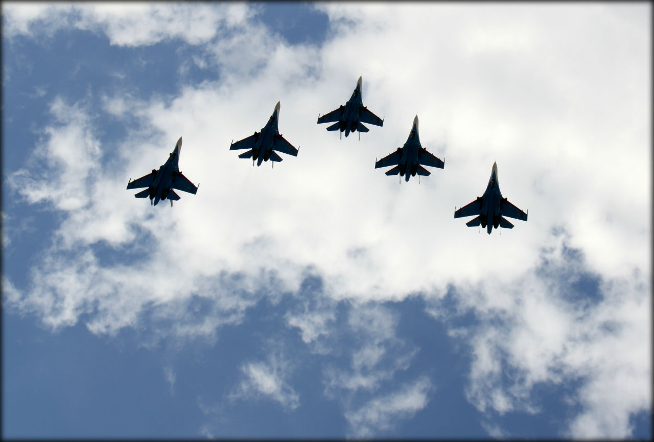 Как только Су-27 почти слились с проводами они стали похожи на ноты и в моей голове тут же заиграл "Марш авиаторов"