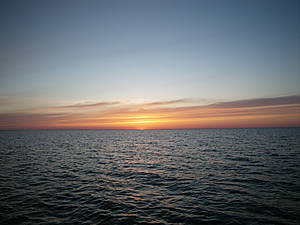 С погодой повезло,солнце жарит,небо безоблачное,впереди синь воды,сливающаяся с небом.