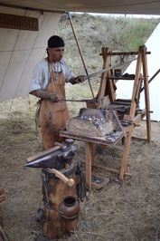 А изначально горшки и прочую другую посуду лепили без применения каких-либо технических приспособлений (вручную). Такая мастерица также была на фестивале.Рядом с гончарами и бусокрутом располагался настоящий кузнец,