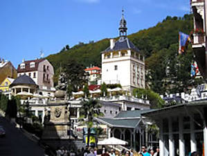 Карловы Вары — курортный город в Чешской республике, расположен на западе исторической области Богемия в месте слияния рек Огрже, Ролава и Тепла. Население: 52 000 чел. В настоящее время в Карловых Варах на поверхность выходят 12 целебных источников сходных по химическому составу, но имеющих разное содержание углекислого газа и температуру, от 30 до 72 градусов Цельсия. Существует ещё источник № 13 — так шутливо называют местный крепкий ликёр Бехеровка.