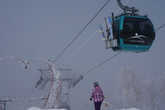 Первым делом поднялась на "Горный воздух". Лес, который я увидела на вершине комплекса, начисто выбил из головы все желания, кроме одного — насладиться увиденным. Это чуть позже налетит тучка, пойдет снег, а сейчас сияло голубое небо и на его фоне выделялось белое кружево заснеженных деревьев изумительной красоты. Зима старалась, она не хотела уходить и говорила нам — я еще не все показала вам! Я еще вас не раз удивлю!