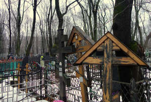 Ездили сегодня на Ваганьково навестить родню мужа. Для кого-то Ваганьковское кладбище — самое помпезное и престижное в Москве. Для меня — это тихое место, с покосившимися оградками и растрескавшимися крестами. Фасад, конечно, здесь блестящий. Один креатив в оградах на центральных аллеях чего стоит!