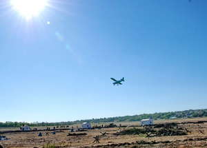 А в воздухе кружили спортивные самолеты, стилизованные как военные истребители.