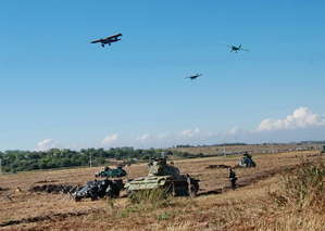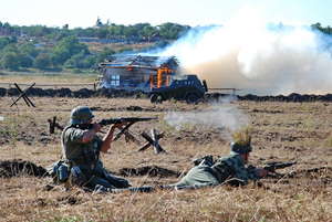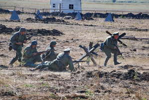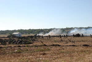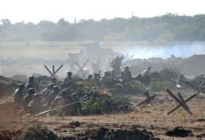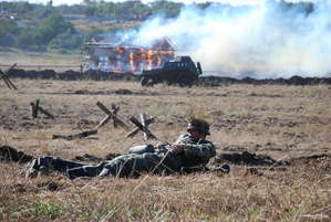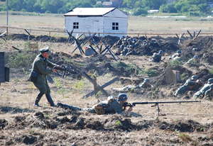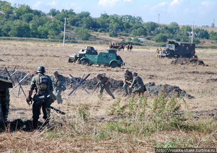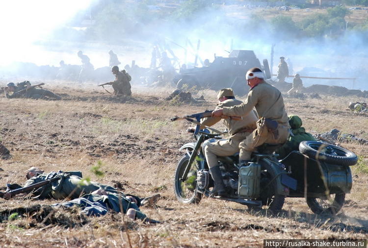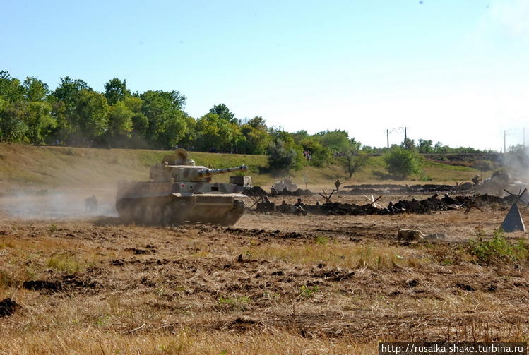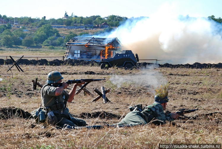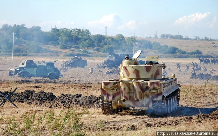 И вот на современном поле боя, оборудованном блиндажами, проволочными заграждениями и окопами полного профиля, в противостоянии сошлось свыше трехсот красноармейцев, морских пехотинцев, кавалеристов и солдат Вермахта. В сражении участвовали артиллерийские орудия, минометы, бронетранспортеры, танки и многие другие образцы военной техники. Причем многие из них побывали в реальных боях, и их пришлось восстанавливать в мастерских Донского военно-исторического музея.