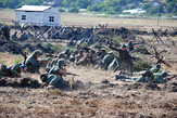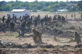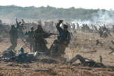 И вот на современном поле боя, оборудованном блиндажами, проволочными заграждениями и окопами полного профиля, в противостоянии сошлось свыше трехсот красноармейцев, морских пехотинцев, кавалеристов и солдат Вермахта. В сражении участвовали артиллерийские орудия, минометы, бронетранспортеры, танки и многие другие образцы военной техники. Причем многие из них побывали в реальных боях, и их пришлось восстанавливать в мастерских Донского военно-исторического музея.